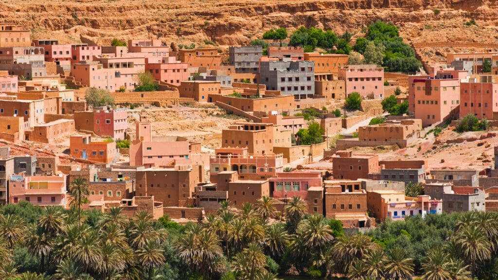 Ouarzazate is also home to the Atlas Film Studios, the largest film studio in Africa. You can take a guided tour of the studios and see the sets of famous films and TV shows. If you’re looking to immerse yourself in the surrounding nature, the nearby Dades and Todra Gorges offer spectacular scenery of towering rock walls and lush palm groves, perfect for hiking or simply enjoying a scenic drive. Whether you’re a history buff, film enthusiast or nature lover, Ouarzazate offers a unique combination of experiences.